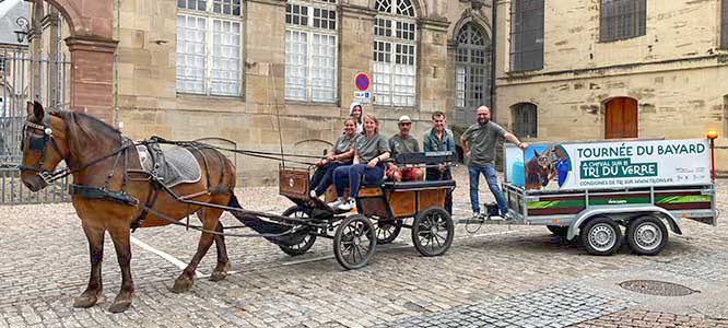 Avez-vous déjà croisé Bayard ? Tous les samedis, un attelage tiré par un cheval du nom de Bayard, sensibilise au tri sélectif du verre en proposant aux commerçants du centre de Lunéville de collecter leur verre usagé. A l’initiative de la Communauté de Communes, cette animation estivale replace le cheval au cœur de la cité cavalière, collecte près de 600 kg de verre et fait sourire promeneurs et clients des terrasses.