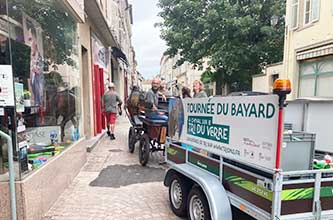 Avez-vous déjà croisé Bayard? Tous les samedis, un attelage tiré par un cheval du nom de Bayard, sensibilise au tri sélectif du verre en proposant aux commerçants du centre de Lunéville de collecter leur verre usagé. A l’initiative de la Communauté de Communes, cette animation replace le cheval au cœur de la cité cavalière, collecte près de 500 kg de verre et fait sourire promeneurs et clients des terrasses.