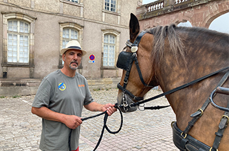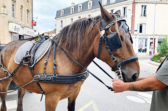 Bayard est un jeune cheval de trait de 8 ans. Depuis quelques années, il vit en pension à la Galopade, centre équestre à Lunéville. Spécialement pour cette opération, Bayard a été formé au débourrage et à l’attelage pendant 2 semaines au haras de Rosières-aux-Salines. De retour à la Galopade, c’est Angie qui a été choisi comme cochère à la conduite l’attelage hippomobile tiré par Bayard.