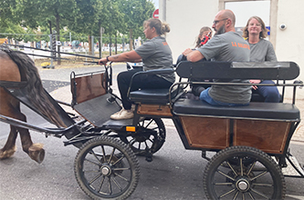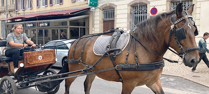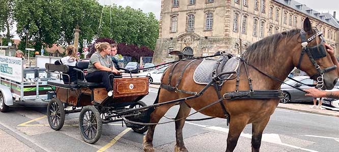 Aujourd’hui, les habitants et les visiteurs de la Cité cavalière peuvent recroiser une calèche, tirée par un cheval (et un cocher vigilant) dont le nom est précisément … Bayard !