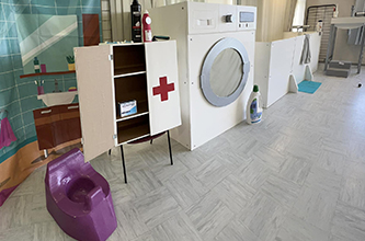 Justine Migot : « nous disposons également d’une maxi maison avec des immenses meubles qui a pour but de sensibiliser les parents à des situations dangereuses pour leurs enfants. Cet outil sera présenté au salon des Rendez-vous des métiers de la santé, le 13 avril prochain au gymnase de la Barollière à Lunéville et prochainement à la médiathèque l’Orangerie. »