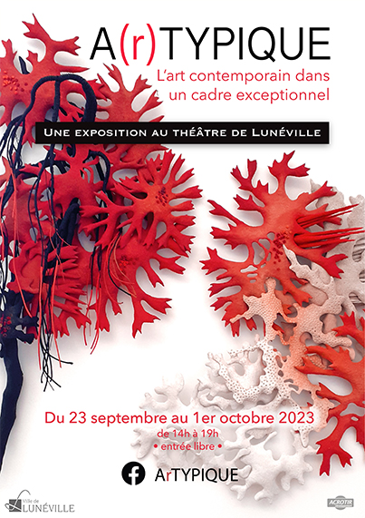 Déambulez dans les couloirs du théâtre de Lunéville, du hall d’entrée aux loges en passant par les coulisses, ArTYPIQUE investit les lieux pour faire découvrir au public les œuvres d’une trentaine d’artistes. Le projet est porté par Dominique Aubert, ancien architecte Lunévillois qui, après avoir investi les Bains-douches de Lunéville et l’église Saint-Maur, s’apprête à investir un nouveau lieu emblématique de la ville.