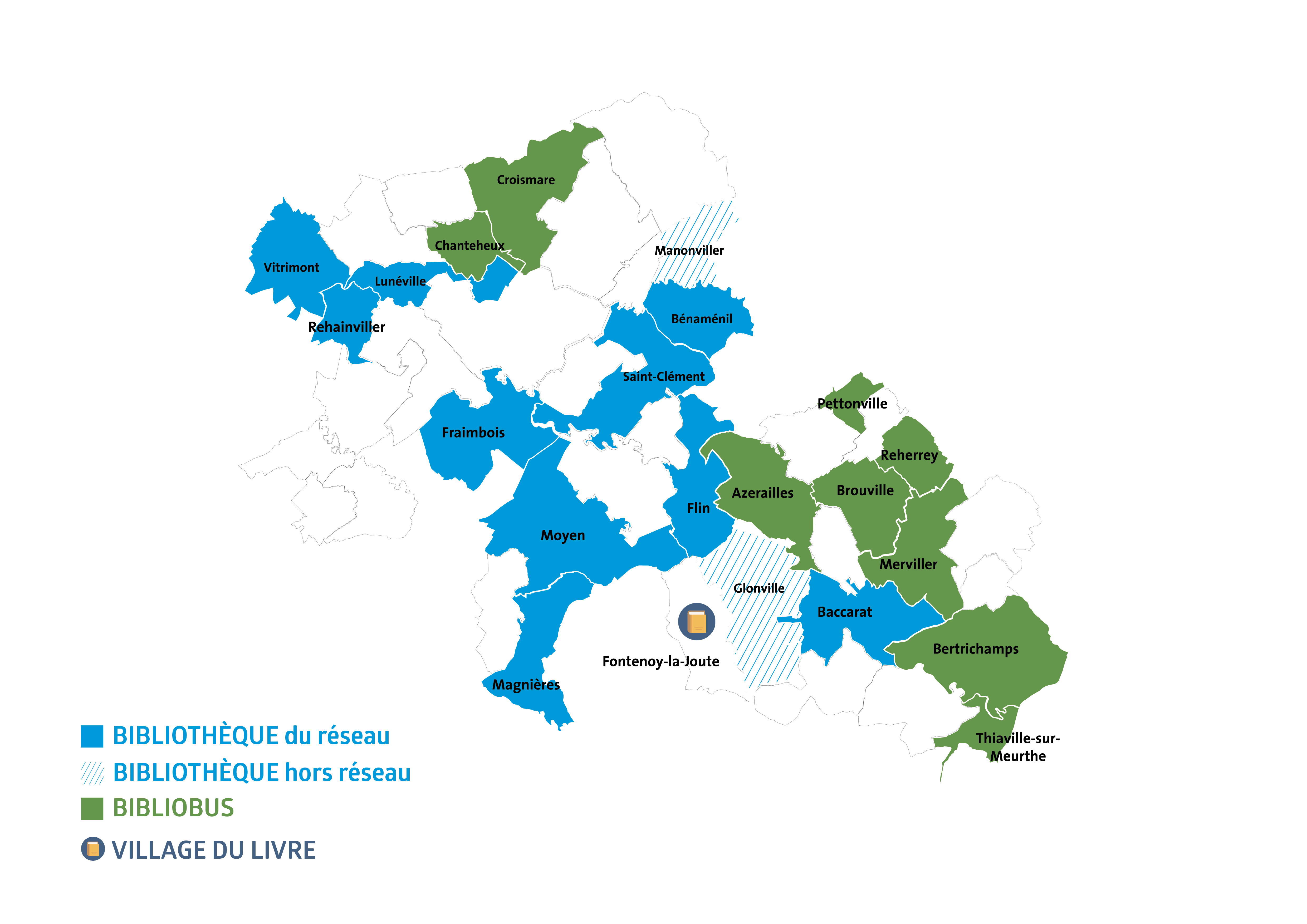 En cours d’élaboration, le Réseau des médiathèques et bibliothèques du Lunévillois se compose de 9 médiathèques et bibliothèques présentes dans les communes suivantes :