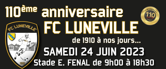 Le FC Lunéville invite tous les anciens Présidents, dirigeants, éducateurs, arbitres joueurs, supporters, et les familles à venir nombreux à cette que manifestation historique. Entrée gratuite et ouverte à tous |