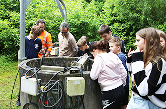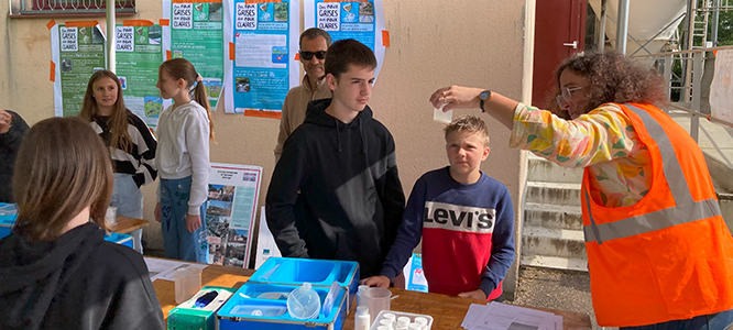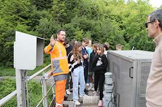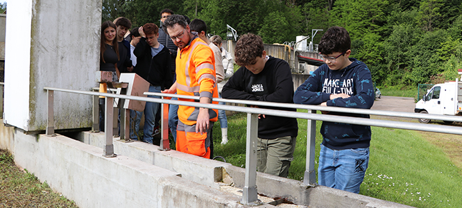 Dans le même temps, Bastien Louis emmène son groupe en visite sur la station : découverte des différents bassins de traitement, explications des étapes de la chaîne de dépollution de l’eau et contrôle de rejet des eaux usées pour finir.