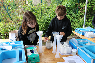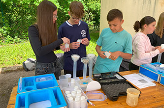 Pour sensibiliser ces nouvelles générations à la problématique de l’eau, Dorothée Viton explique tout d’abord à son groupe l’évolution de l’assainissement à travers les époques, du tout à la rue au tout à l’égout pour en arriver à la première loi sur l’eau en 1964. Elle utilise ensuite une mallette pédagogique pour réaliser deux expériences sur la miscibilité des éléments dans l’eau et la filtration. Résultat : ces jeunes scientifiques en herbe découvrent que l’huile et le sable peuvent être facilement séparés lorsqu’ils sont dans l’eau. Ils découvrent également un système d’épuration des plus simples : la filtration par le sable utilisé à la station du hameau de Badménil.