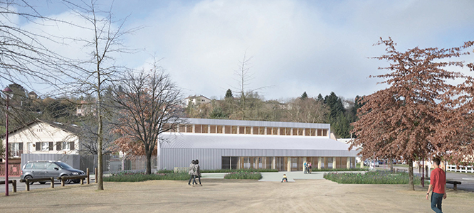 La nouvelle médiathèque de Baccarat s’élève en lieu et place de l’ancienne. Le bâtiment neuf s’articule avec le centre de loisirs et les équipements sportifs voisins pour construire une nouvelle approche de la place du Général de Gaulle, ouverte et accueillante.