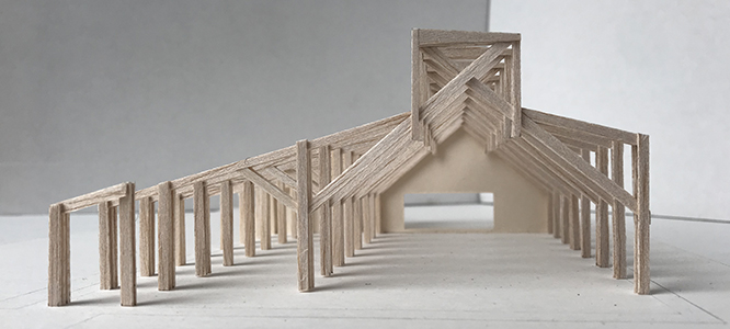 Le bâtiment est entièrement réalisé en structure bois et isolé par des matériaux naturels (fibre de bois) permettant d’assurer d’excellentes performances thermiques en hiver comme en été. La charpente en bois apparent structure l’espace sous forme de portiques et dessine une nef éclairée depuis son zénith apportant une lumière douce, propice à la lecture. Tous les locaux ouverts au public sont habillés de panneaux bois en peuplier, afin de proposer un cadre chaleureux et noble aux futurs usagers du bâtiment.