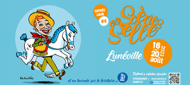 La quatrième édition de « Scènes en Selle », festival de création équestre, organisé par l’association Equi’art Concept, se tiendra du 16 au 20 août 2023. Ce spectacle de théâtre de rue, dédié à l’art équestre, vous donne rendez-vous au cœur de la ville de Lunéville et à l’Orangerie, médiathèque à Lunéville. Demandez le programme !